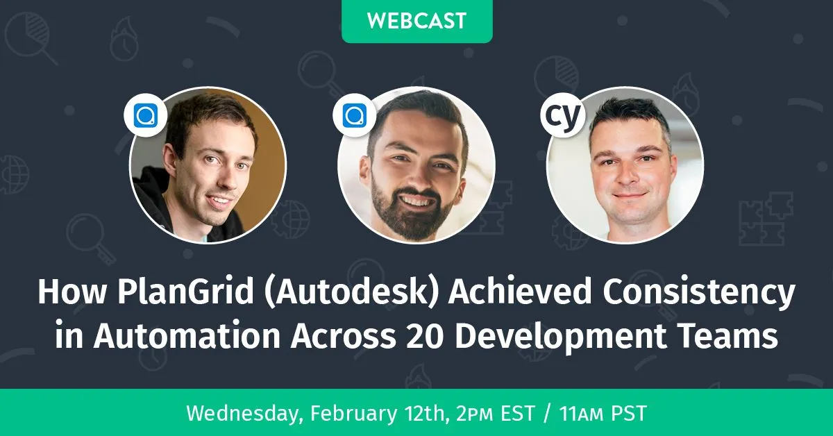 Join us on Wednesday, February 12th at 2pm ET/11am PT to learn exactly how the PlanGrid Automation Platform team achieved their current Cypress implementation, and how they’ve been successful in dispersing maintenance across 20+ development teams.