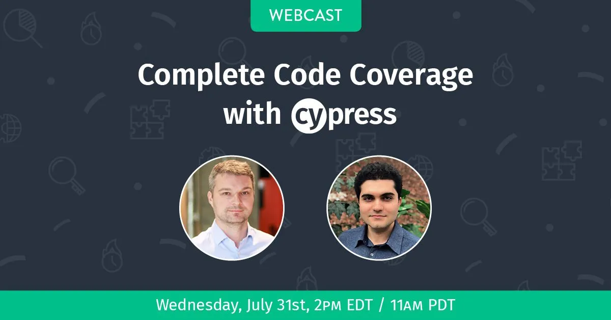 We're here to help - join Gleb Bahmutov, VP of Engineering and Amir Rustamzadeh, Sr. Engineer at Cypress on Wednesday, July 31st at 2 pm EDT / 11 am PDT for a detailed webcast on how to instrument your web application source code and generate coverage reports from your Cypress tests. We'll also livestream the broadcast to our YouTube channel.