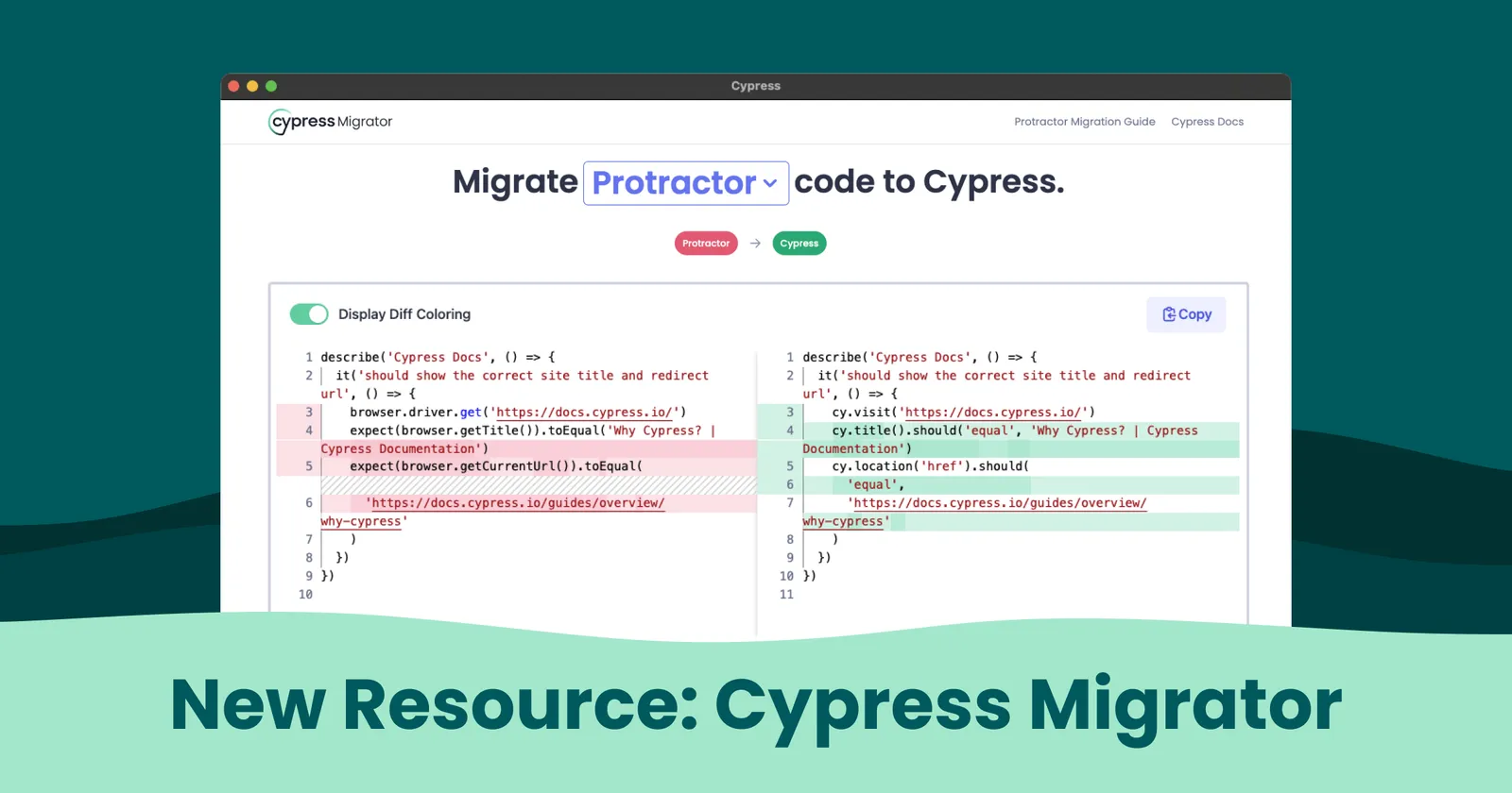 We’ve created an educational tool to help you visualize and learn the differences between Protractor and Cypress APIs to move your tests over more rapidly: the Cypress Migrator!