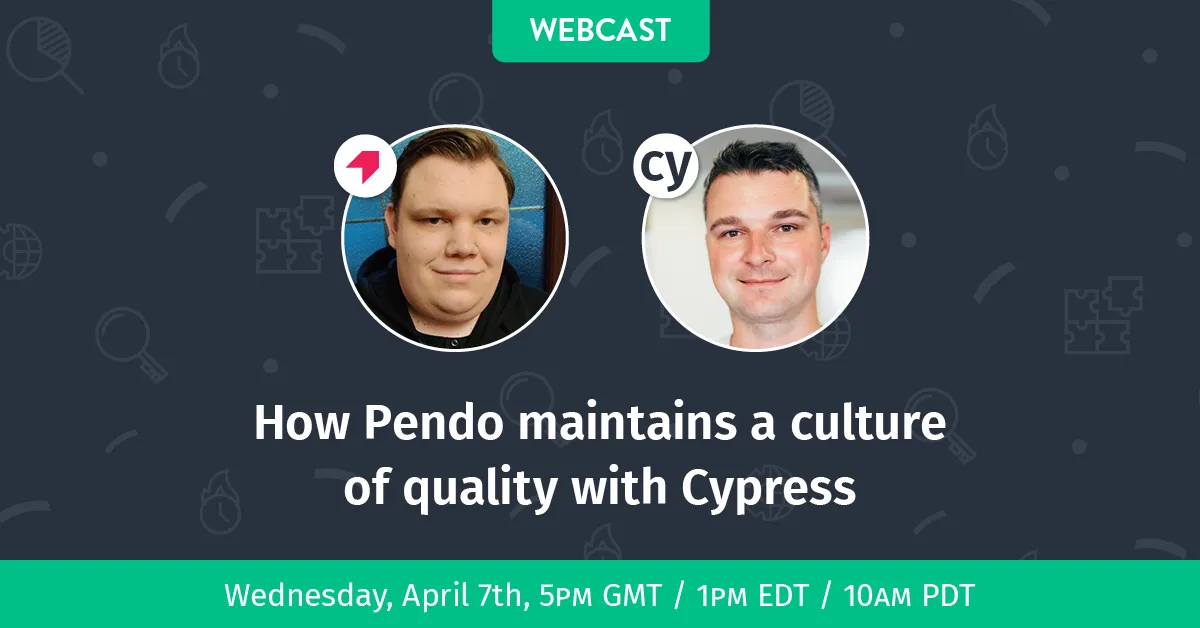 Pendo's product cloud provides user insight, user guidance, and user communication for thousands of digital product teams—all while maintaining a first-class industry reputation. Join us Wednesday, April 7th at 5:00pm GMT/1:00pm EDT/10:00am PDT to find out why Pendo's quality engineers chose Cypress to rebuild their test suite and continue their commitment to quality.
